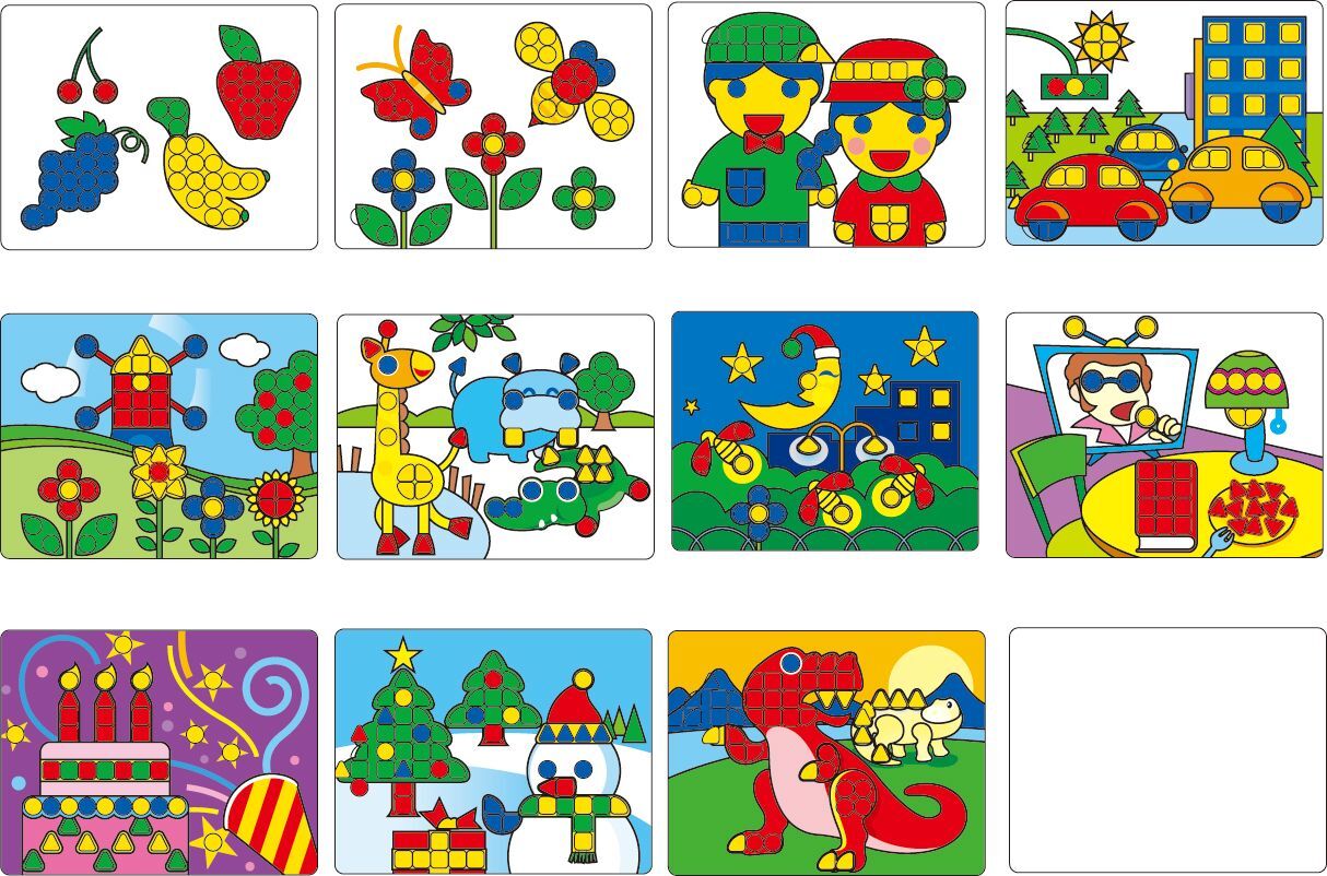 Gigo 1192-2 Рабочие карточки для набора Гео-блоки - с помощью карточек из данного набора, ребенок должен самостоятельно выложить соответствующую картинку используя набор "Гео-блоки". Когда ребенок соберет картинку, попросите его назвать, что на ней изображено.