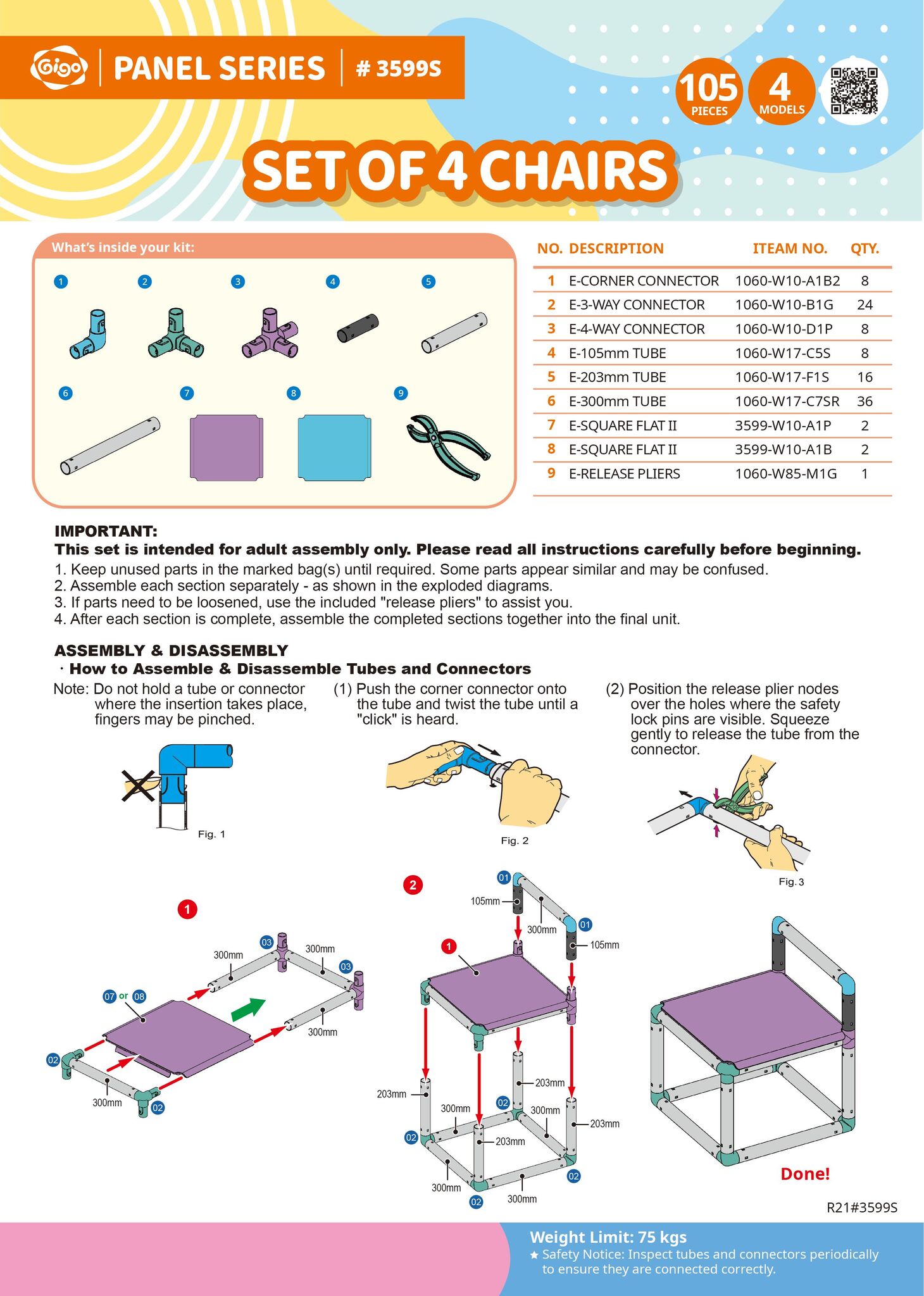 GIGO 3599/3599S Набор стульев (4шт.) - набор сборных стульев. Отлично подходят к сборному столу. В комплект входит 4 стула.