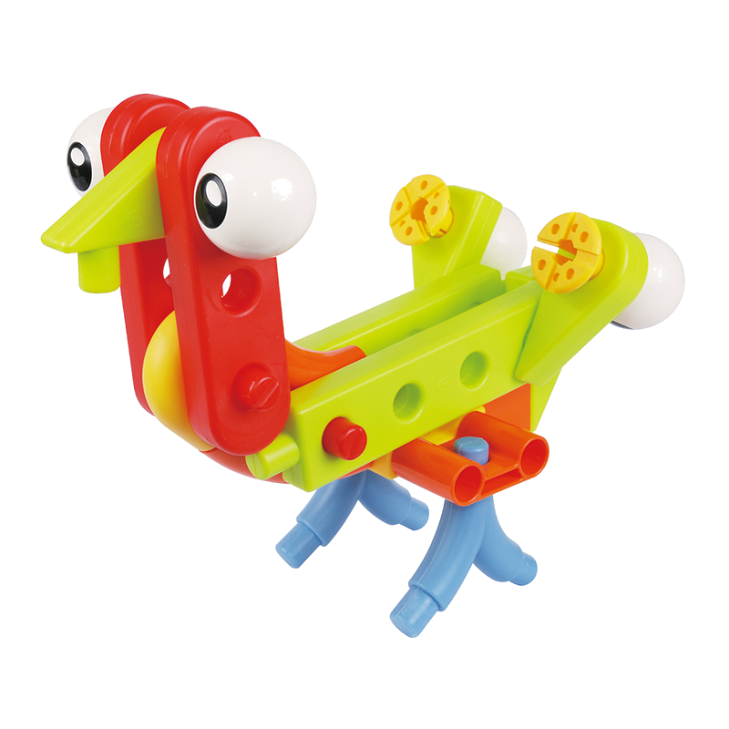 Все модели получаются крупными, поэтому с каждой из них интересно играть. При этом ребенок учится распознавать цвета и формы, развивает ассоциативное мышление, поскольку все игрушки имеют аналоги в реальном мире: краба, лягушки, улитки, петуха.