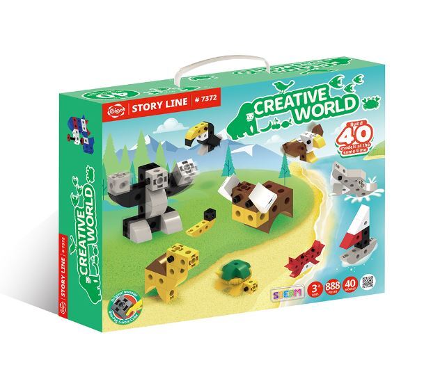 В набор "Кубики - окружающий мир" из серии "Собери кубики" входит 888 деталей: уникальные кубики и соединительные элементы, призмы, штифты, из которых можно собрать 40 захватывающих моделей по пяти темам: животные, морские обитатели, птицы, растения и транспорт.
