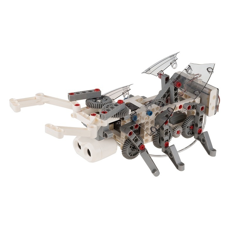 - 230 деталей (разнообразные балки, оси, кожухи, рамки, штифты, фиксаторы, шестеренки, мотор-редуктор, гибкий ведущий вал, челюсти робота);