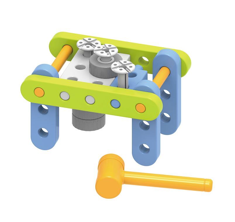 Этот необыкновенный конструктор продемонстрирует вашему ребенку, что такое молоток и гвозди. Шестеренки, входящие в набор, наглядно объяснят ему принцип работы механизмов. Ребенок приобретет многие полезные навыки: научится замечать причинно-следственные связи в окружающем мире, разовьет крупную моторику рук, восприятие цвета и формы, координацию движений и азы пространственно-логического мышления, в том числе чувство симметрии. Игры с этим конструктором также способствуют запоминанию цветов и развитию воображения.