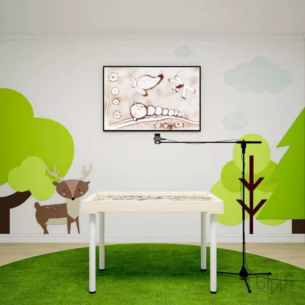 Готовая студия рисования песком «Профессиональная» состоит из удобного портативного столика, мощной веб-камеры с функцией онлайн-фото и стриминга, а также переносного штатива. Работа за световым столом обладает множество преимуществ, так необходимых для развития детского организма. Одними из самых главных являются: