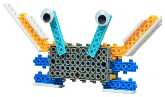 - Модели для сборки: волк и три поросенка из сказки "Три поросенка", жираф, страус, краб и слон из сказки "Прятки" или робот-крокодил, робот-лягушка, робот-собака и робот-кролик.