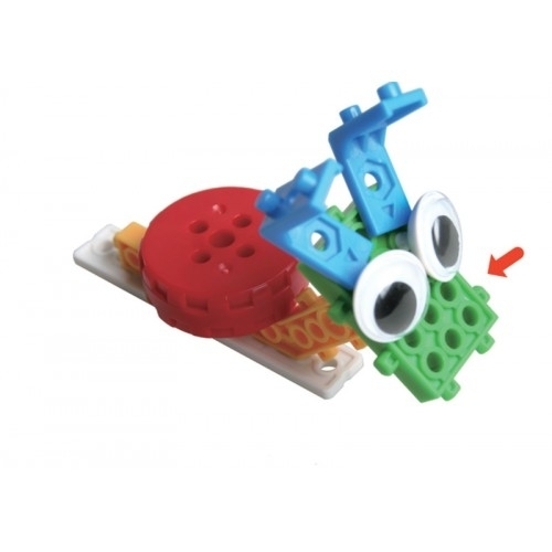 16 роботов, которых можно собрать из конструктора: кролик, самолёт, вертолёт, лягушка, крокодил, собачка, лодка, олень, улитка, цыплёнок, мышь, орел, автомобиль, колесо обозрения, карусель и мельница.