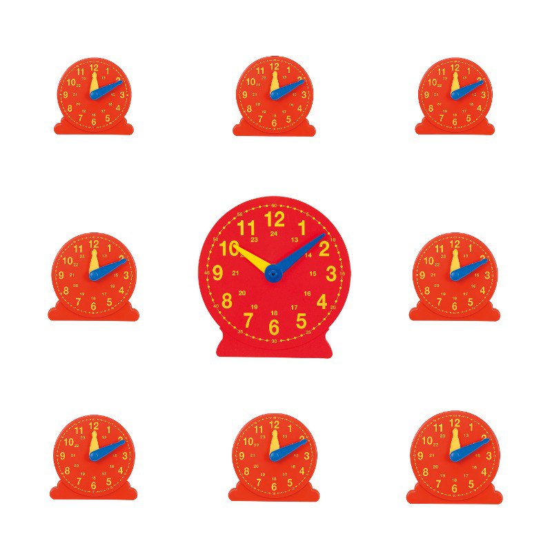 Комплект "Учимся определять время" на группу 8 детей - образовательный набор предназначен для дошкольников и включает 8 маленьких часов для детей и одни демонстрационные часы для педагога, визуально часы идентичны, что упрощает процесс обучения, часы имеют 12 и 24 – часовые форматы.