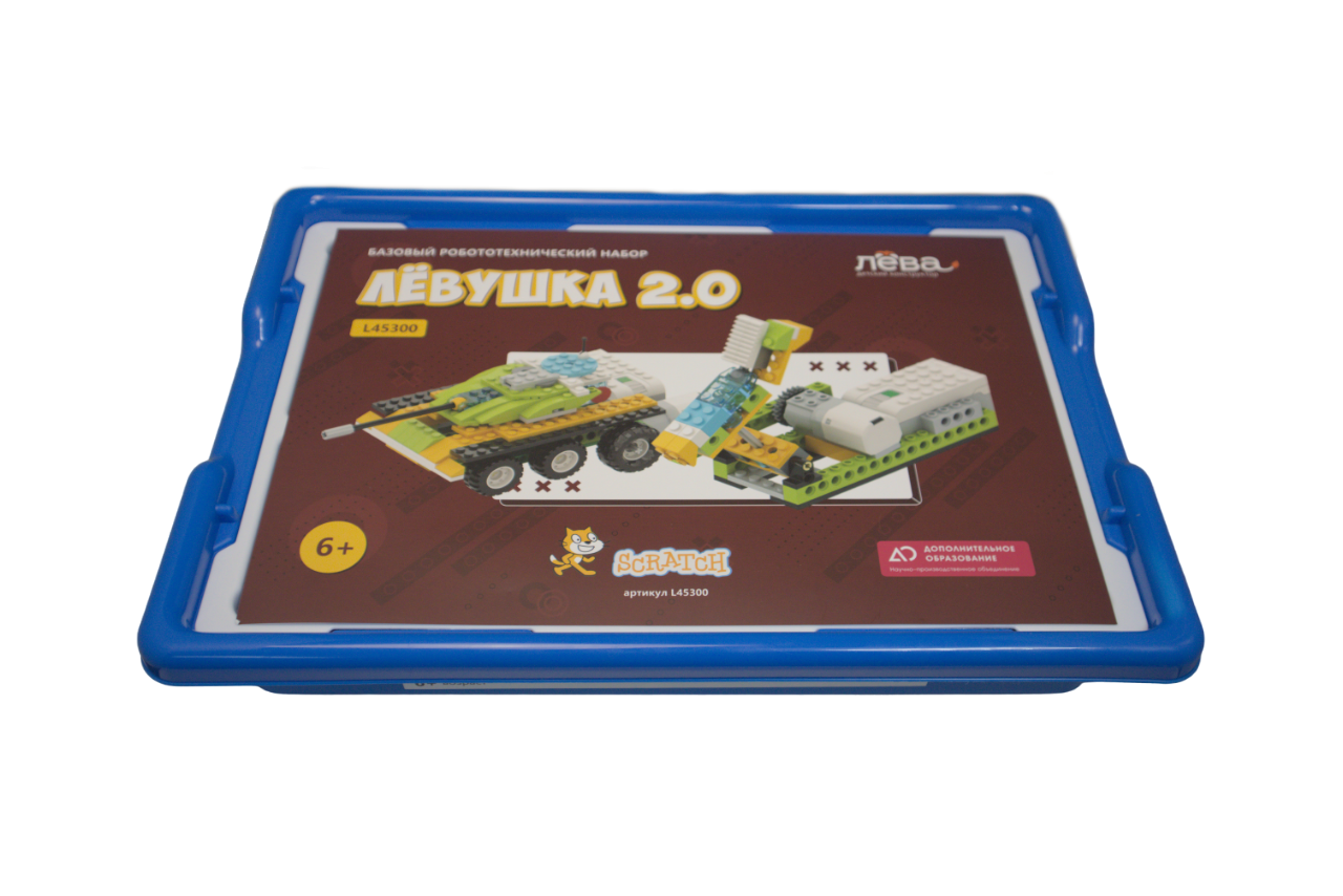 Лёвушка 2.0 — стартовый образовательный комплект для знакомства детей с основами робототехники и программирования. Ребенок создает механические конструкции, соединяя детали, микроконтроллер («СмартХаб»), моторы и сенсоры, и тут же проверяет работоспособность собранного устройства. Данный набор предназначен для детских садов, начальных классов школ (1–4 классы), а также дополнительного образования дома и в специализированных секциях.