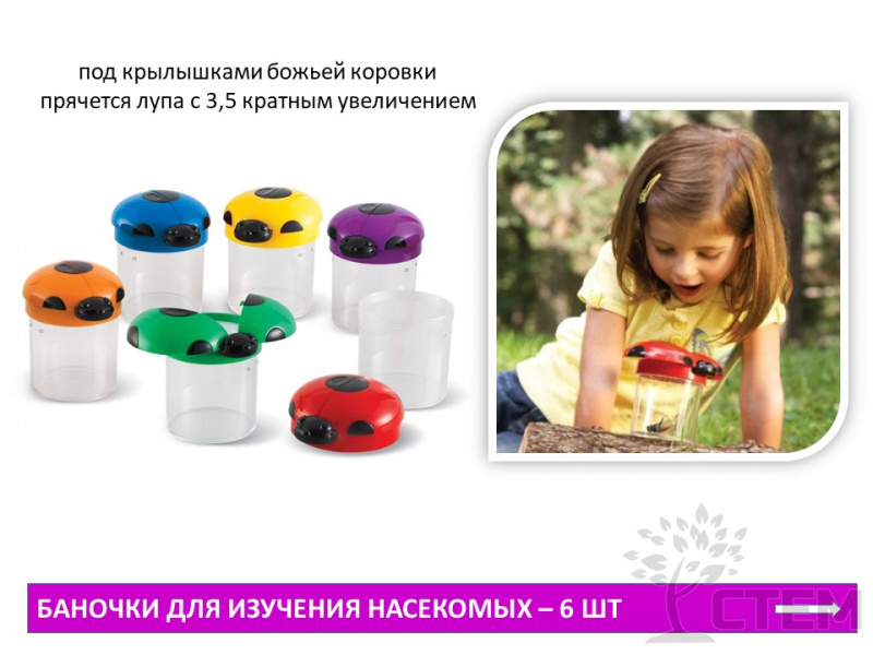 - Баночки для изучения насекомых, с увеличительным стеклом -6шт